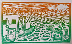 Helen Callear is an artist from the edge of the Yorkshire Dales, Masham, North Yorkshire. She specialises in linocuts and etchings, but also paints in watercolour and acrylics. She is inspired by the stark contrast and balance seen in nature, the seasons and the wheel of the year as well as folk art, classic design icons, textile and ceramic patterns, folklore, myths, and legends